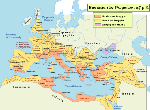 I recently came across a super cool map posted on another blog. It is a map of the Roman Empire during the reign of Trajan (AD 117) when it was at its largest extent. That itself is nothing too noteworthy. There are thousands of those kinds of maps online for any who search. What sets this one apart is that all of the Roman provinces and client states and city names have been translated to reflect their names in Greek! Ancient Greek, to be specific. That is really cool. Wanna see it?